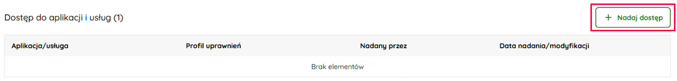 Kliknij Nadaj uprawnienia w części Dostęp do aplikacji i usług.