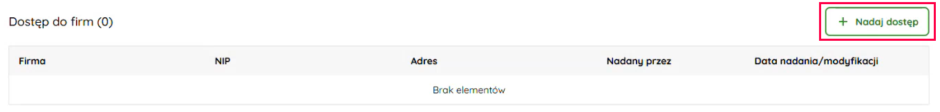 Kliknij Nadaj uprawnienia w części Dostęp do firm i wybierz Do wybranej firmy.