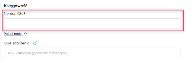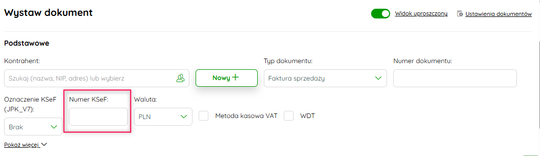 W związku z wdrożeniem Krajowego Systemu eFaktur na formularzu dokumentu pojawiły się dwa dodatkowe pola: