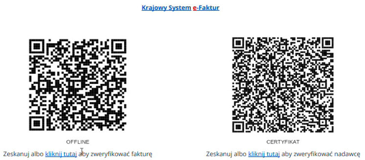 7. Zobaczysz na samym końcu formularza faktury ustrukturyzowanej 2 kody QR, gdy faktura zostanie przyjęta przez KSeF.