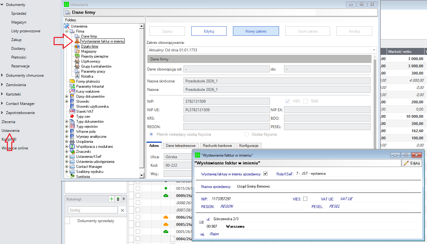 W związku ze zmianami wprowadzonymi w Symfonia KSEF Plus, dotyczącymi funkcji Podmiot inny (Podmiot3), zaktualizowano również moduły handlowe. Aktualizacja obejmuje proces wystawiania faktur w imieniu sprzedawcy i zapewnia jego zgodność z nowymi zasadami obsługi tej funkcji.