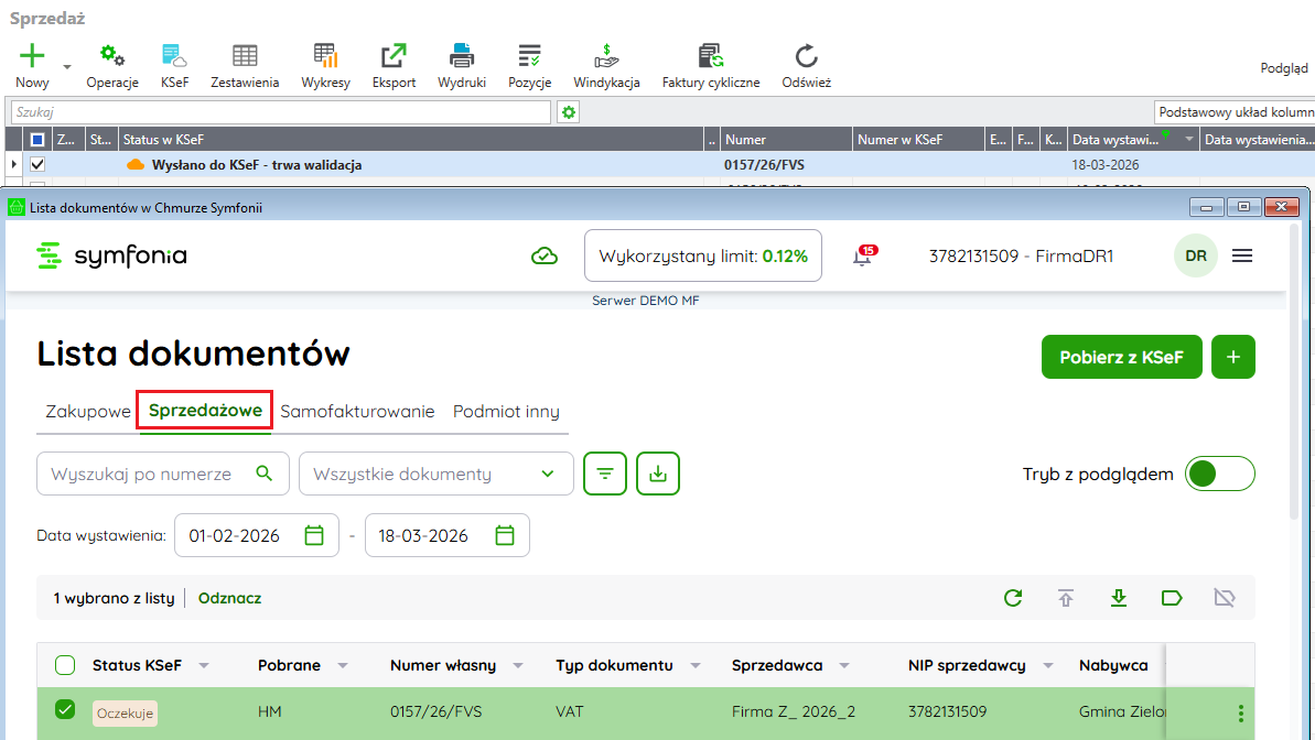 W Symfonii KSeF Plus dokument zostanie zapisany w zakładce dokumenty Sprzedażowe