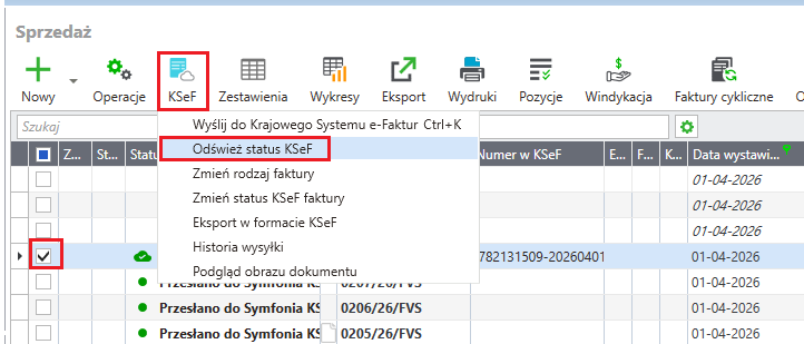 - sprawdź jaki ma status w kolumnie Status w KSeF