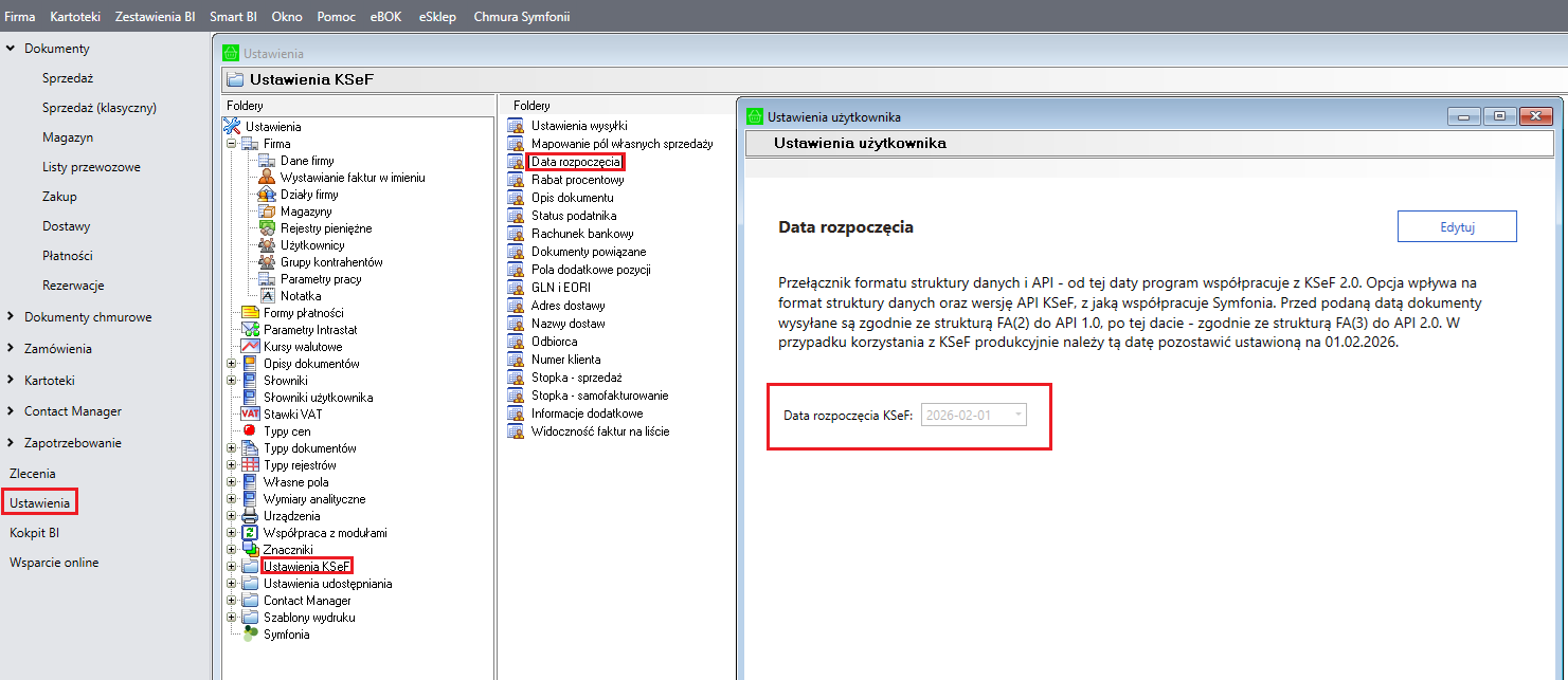 W ustawieniach programu zweryfikuj datę rozpoczęcia stosowania faktur ustrukturyzowanych.