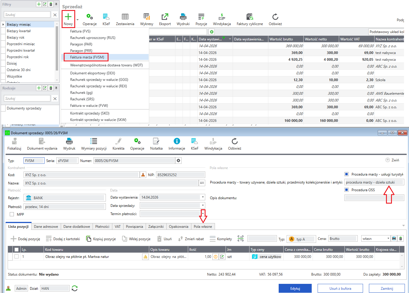 Wystawianie faktury VAT marża w programie Symfonia Handel oraz jej wysyłanie do KSeF