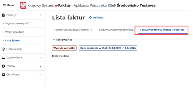 Zakładka „Faktury podmiotu innego (Podmiot3)” w KSeF MF