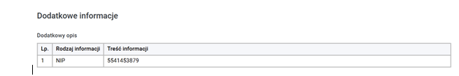 Identyfikator podatkowe w sekcji ‘Dodatkowe informacje’ na podglądzie faktury w KSeF