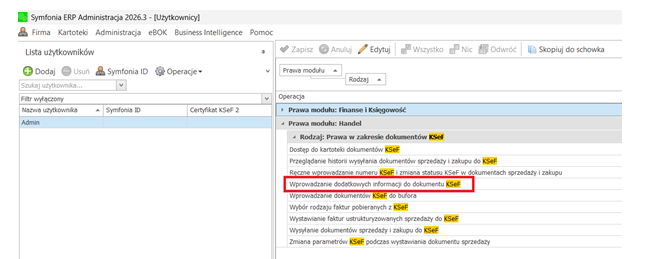W module Administracja istnieje możliwość ograniczenia dostępu do tej funkcji. Administrator może odebrać użytkownikom uprawnienie: