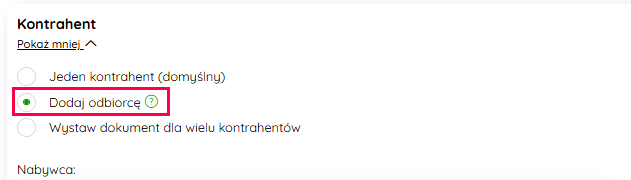 Kliknij Pokaż więcej bezpośrednio pod nazwą sekcji Kontrahent.