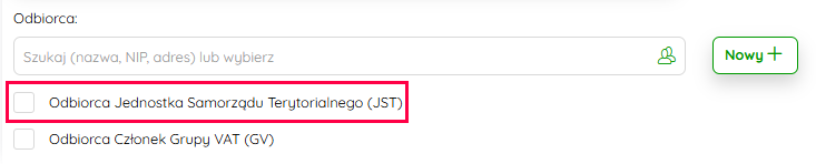 Kliknij na obraz, żeby powiększyć Zaznacz opcję Odbiorca Jednostka Samorządu terytorialnego (JST).
