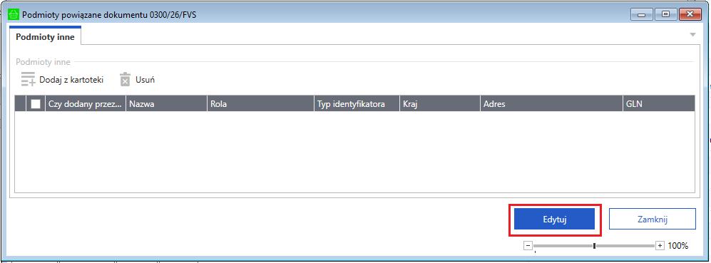 - Zgodnie z wymaganiami KSeF, w jednym dokumencie może być maksymalnie 100 podmiotów innych.